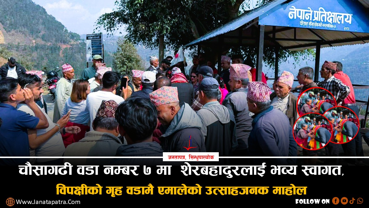 जनतापत्र,सिन्धुपाल्चोकफागुन २१ गते हुने प्रतिनिधि सभा निर्वाचनलाई लक्षित गर्दै शेरबहादुर तामाङलाई चौतारा साँगाचोकगढी नगरपालिका वडा नम्बर ७ मा भव्य स्वागत गरिएको छ। प्रतिनिधि सभा निर्वाचन...