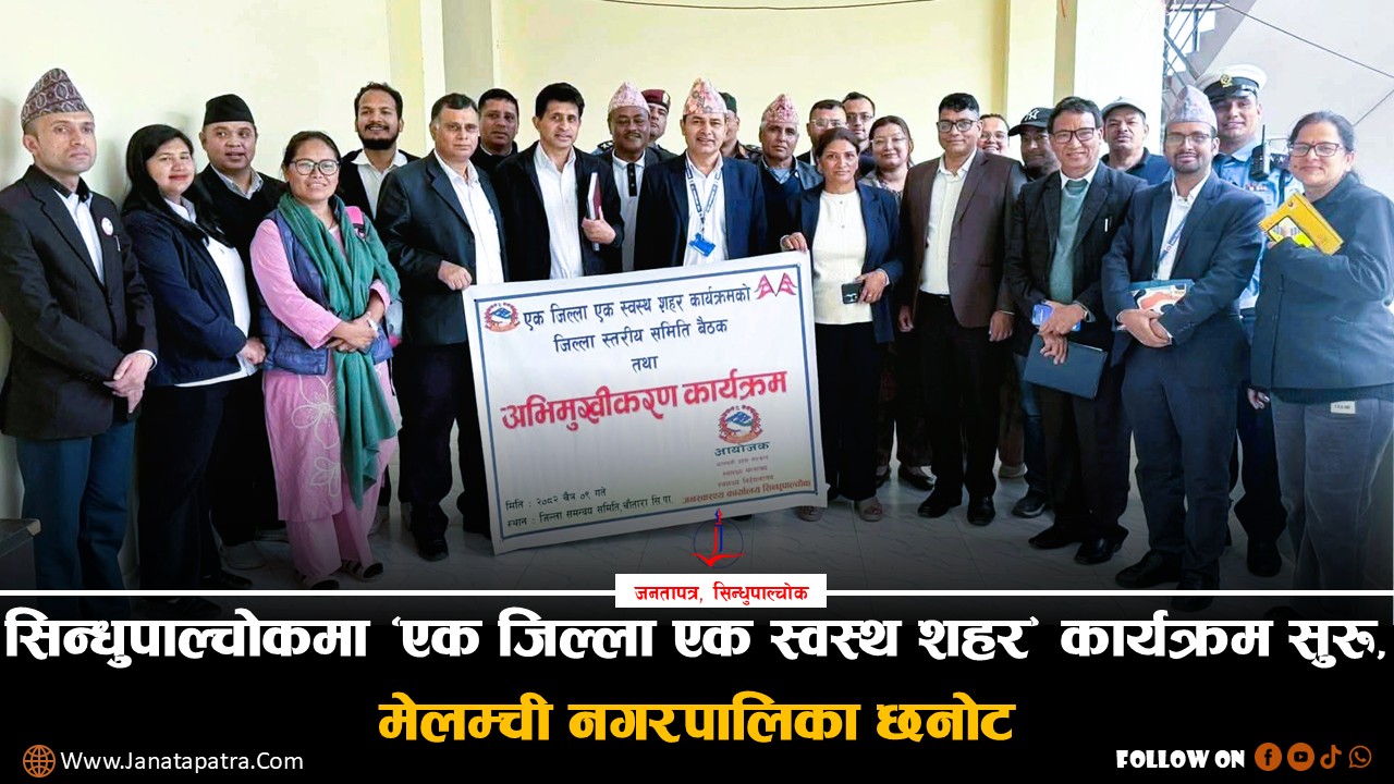 जनतापत्र,सिन्धुपाल्चोक ।सिन्धुपाल्चोकमा ‘एक जिल्ला एक स्वस्थ शहर’ कार्यक्रमअन्तर्गत जिल्ला स्तरीय अभिमुखीकरण तथा समिति बैठक सम्पन्न भएको छ। जिल्ला जनस्वास्थ्य कार्यालय सिन्धुपाल्चोकको आयोजनामा सोमबार चौतारास्थित जिल्ला|