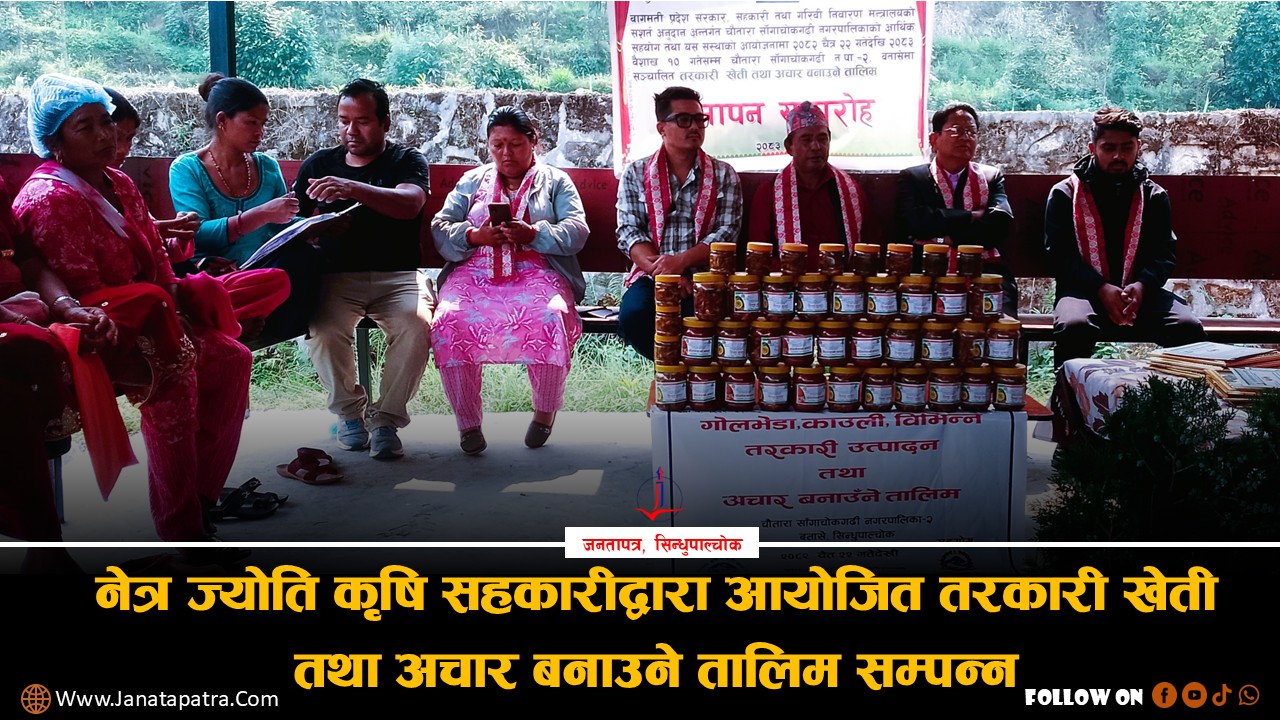 जनतापत्र,सिन्धुपाल्चोक ।चौतारा साँगाचोकगढी नगरपालिका–२ बतासे मा गोलभेडा, काउली लगायत विभिन्न तरकारी उत्पादन तथा अचार बनाउने तालिमको उद्घाटन गरिएको छ। स्थानीय कृषि उत्पादन प्रवर्द्धन तथा आयआर्जनका...