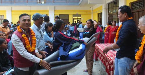७५ जना छात्रछात्रालाई एक–एक जोर ट्रयाकसुट, एक–एक थान सिरक, प्रतिविद्यार्थी एक–एक थान कम्वल, म्याटे«क्स वितरण गरिएको हो ।