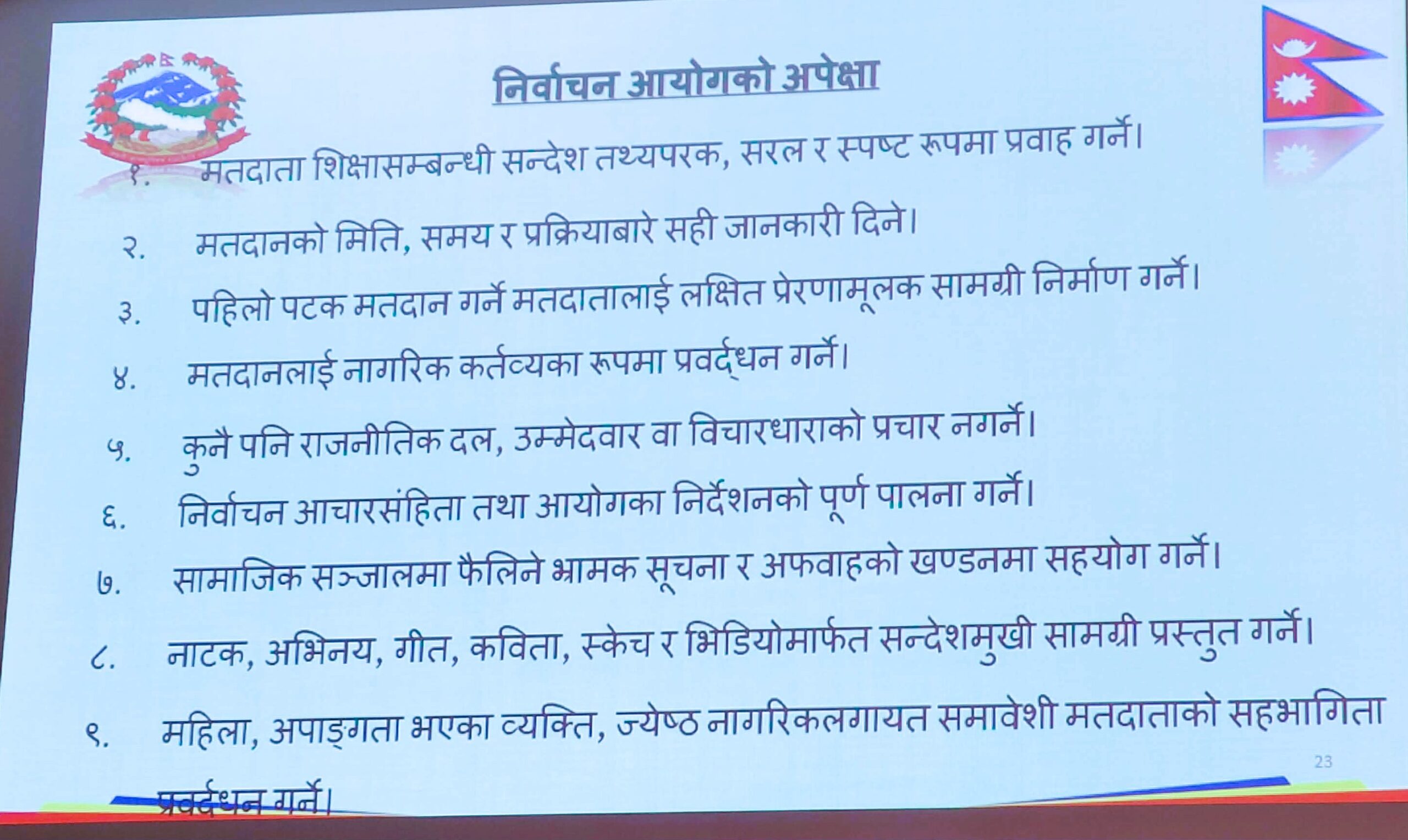 साथै मतदाता सुरक्षालाई केन्द्रबिन्दुमा राखेर सम्पूर्ण कार्य निर्वाचन कानुन तथा आयोगका निर्णयअनुसार समयमै सम्पन्न गरिने स्पष्ट पारियो। कार्यक्रममा “प्रतिनिधि सभा निर्वाचन एकीकृत जिल्ला सुरक्षा योजना–२०८२” तर्जुमा गरी कार्यान्वयनमा ल्याइएको, कृत्रिम मतदान अभ्यास सफलतापूर्वक सम्पन्न भएको, मतपेटिका ढुवानी योजना तयार भइसकेको तथा संयुक्त र एकल गस्ती व्यवस्थालाई प्रभावकारी बनाइएको जानकारी गराइएको थियो। सुरक्षा निकायका अनुसार आवश्यक तालिम तथा आन्तरिक तयारीसमेत पूरा भइसकेको छ, जसले निर्वाचनलाई व्यवस्थित र शान्तिपूर्ण बनाउन थप बल पुगेको छ।