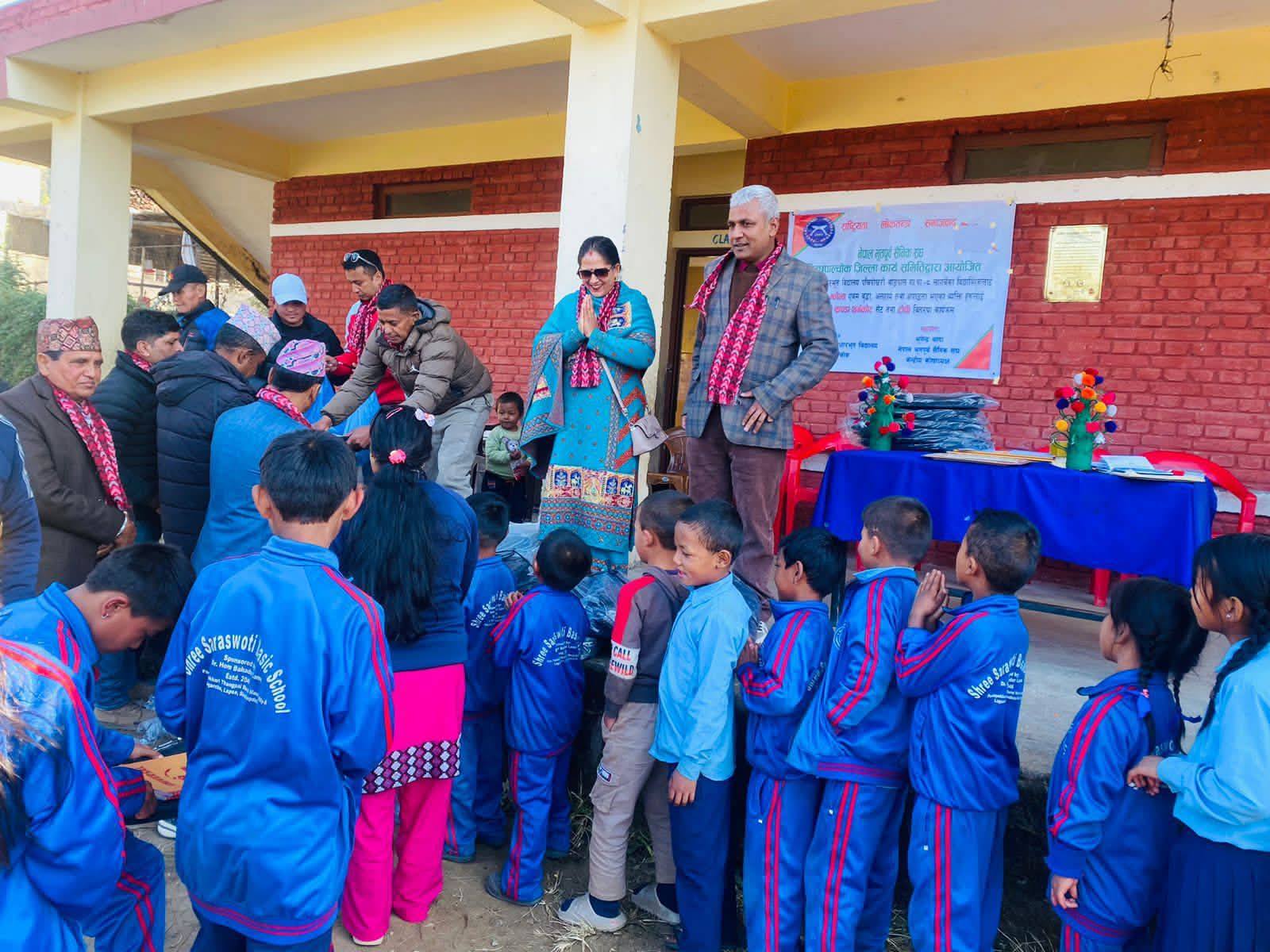 पाँचपोखरी थाङपाल गाउँपालिका–८, लागर्चेस्थित श्री सरस्वती आधारभूत विद्यालयमा आइतबार नेपाल भूतपूर्व सैनिक संघ सिन्धुपाल्चोक र थापा इन्टरप्राइजेजको संयुक्त आयोजनामा विद्यार्थी तथा अभिभावक लक्षित शैक्षिक तथा न्यानो सामग्री वितरण कार्यक्रम सम्पन्न भएको छ। समुदायमा शिक्षा र सामाजिक उत्तरदायित्वको भावना अभिवृद्धि गर्ने उद्देश्यले आयोजना गरिएको कार्यक्रममा विद्यालयका विद्यार्थीलाई झोला, कापी–कलमलगायत आवश्यकीय शैक्षिक सामग्री तथा ज्येष्ठ नागरिक, अपाङ्गता भएका व्यक्ति र असहाय अभिभावकलाई न्यानो कपडा वितरण गरिएको विद्यालयले जनाएको छ।
