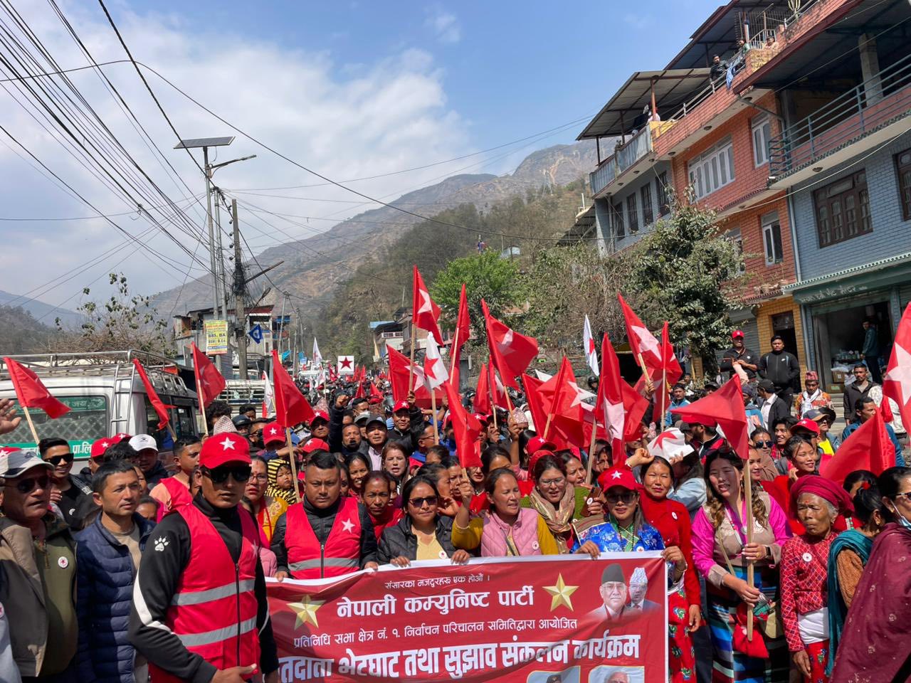 प्रतिनिधि सभा क्षेत्र नम्बर–१ मा आइतबार विभिन्न दलले छुट्टाछुट्टै कार्यक्रम आयोजना गरे। नेपाल कम्युनिष्ट पार्टी (एमाले)ले सुकुटेबाट सुरु गरेको मोटरसाइकल ¥याली बलेफी, खाडिचौर र लामोसाँघु हुँदै बाह्रबिसेसम्म पुगेको थियो। ¥यालीमा सहभागी नेता–कार्यकर्ताले नाराबाजीसहित बजार क्षेत्रमा उपस्थिति जनाएका थिए। त्यसक्रममा उम्मेदवारले स्थानीय व्यापारी, सर्वसाधारण र युवासँग संवाद गर्दै मत मागेका थिए।