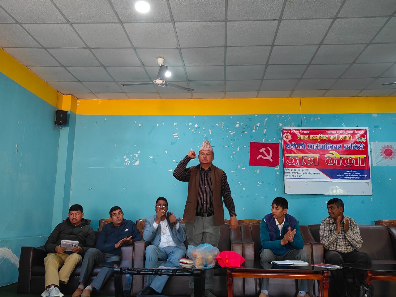 कार्यक्रमको अध्यक्षता गरेका बलेफी गाउँपालिका कमिटी अध्यक्ष नारायणकाजी श्रेष्ठले एमालेको नारा “सुखी नेपाली, समृद्ध नेपाल” साकार पार्न पार्टी निरन्तर जनस्तरमा अभियान सञ्चालन गरिरहेको बताए । उनले एमाले देशभक्त, जनप्रेमी र क्रान्तिकारी पार्टीको रूपमा सधैं उभिने दृढता प्रकट गरे ।