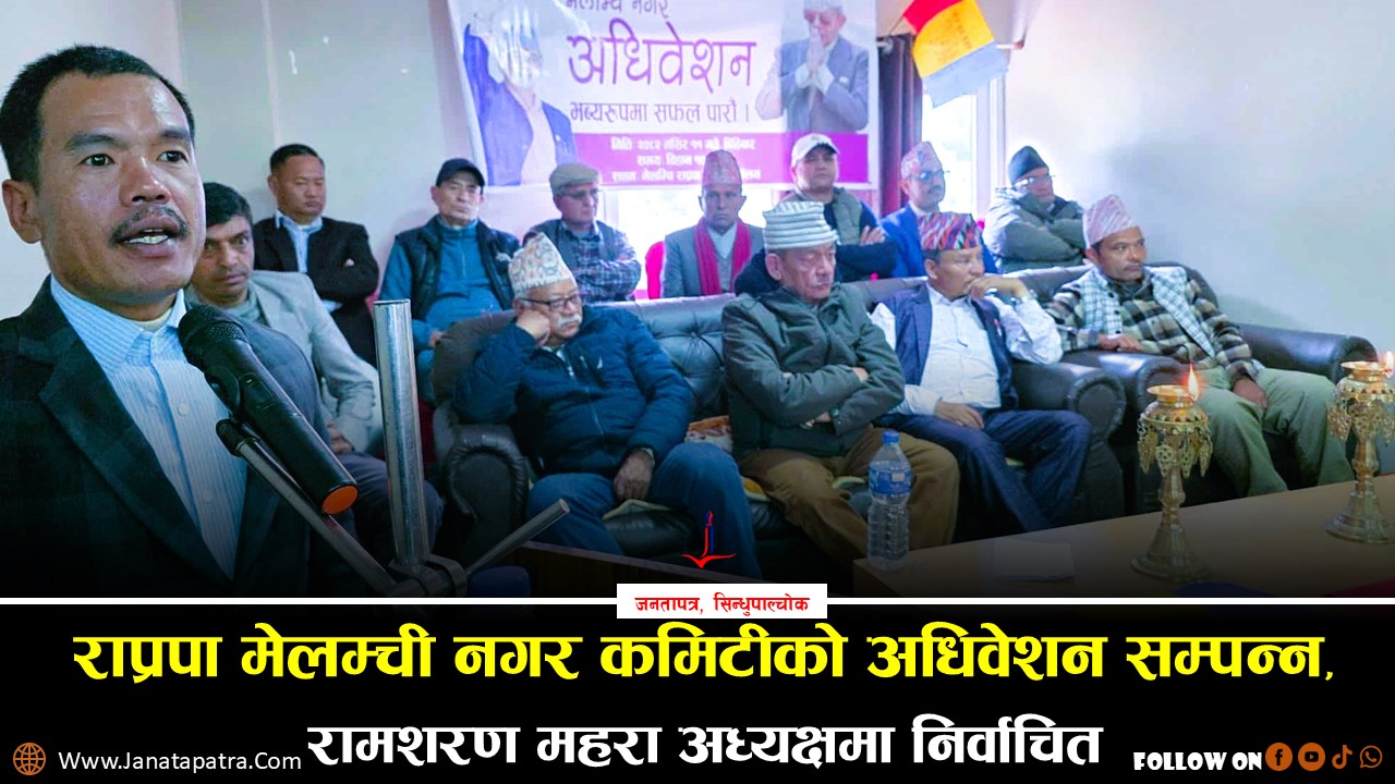 राष्ट्रिय प्रजातन्त्र पार्टी राप्रपा मेलम्ची नगर कमिटीको अधिवेशन विहिबार मेलम्चीमा सम्पन्न भएको छ। अधिवेशन केन्द्रीय सदस्य दइन्द्र बहादुर ठकुरीको प्रमुख आतिथ्यतामा सम्पन्न भएको हो। अधिवेशनले रामशरण महरालाई राप्रپا मेलम्ची नगर कमिटीको नयाँ अध्यक्षमा निर्वाचित गरेको छ। त्यस्तै, अधिवेशनबाट २७ सदस्यीय नयाँ नगर कमिटी चयन गरिएको क्षेत्रीय सचिव देवराज गुरुङले जानकारी दिनु भएको हो । कार्यक्रममा केन्द्रीय सदस्य उदय सापकोटा, गोपाल श्रेष्ठ, पूर्व जिल्ला अध्यक्ष, प्रदेश सांसद कुमारी तामाङ, जिल्ला अध्यक्ष निल ध्वज थापा तथा केन्द्रीय सदस्य जय प्रकाश गुरागाईंलगायतको उपस्थिति रहेको थियो। नेताहरूले राप्रपालाई आगामी दिनमा अझ मजबुत बनाउँदै अघि बढाउने प्रतिबद्धता व्यक्त गर्नु भएको छ ।