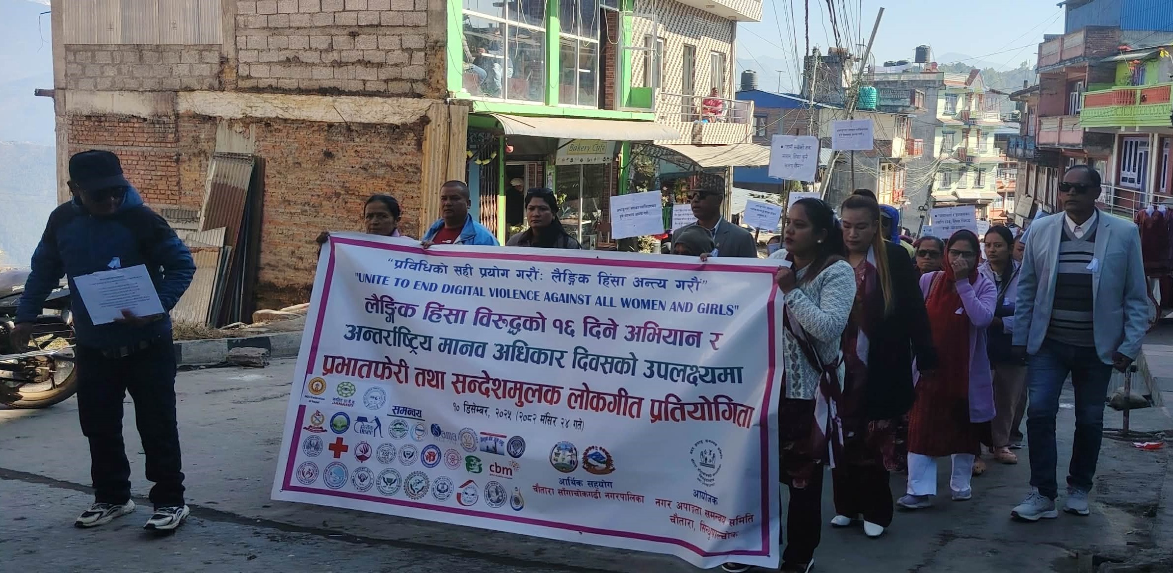 चौतारामा लैङ्गिक हिंसा विरुद्धको १६ दिने अभियान तथा अन्तर्राष्ट्रिय मानव अधिकार दिवसको अवसरमा आयोजित प्रभातफेरी र सन्देशमूलक लोकगीत प्रतियोगिता सम्पन्न भएको छ । चौतारा साँगाचोकगढी नगरपालिका–५ को भिन्तुना चोकबाट सुरु भएको प्रभातफेरी टुडिखेलको फल्चासम्म पुगेर समापन गरिएको थियो ।