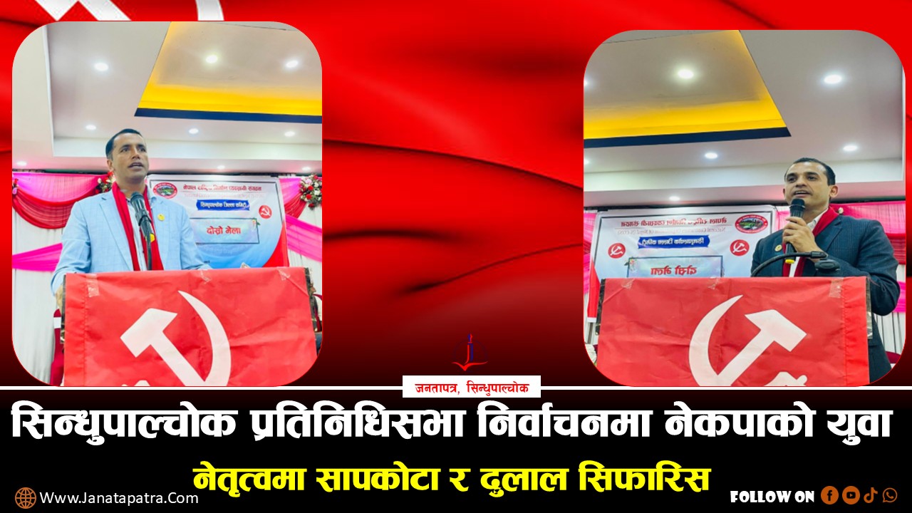 सिन्धुपाल्चोक निर्वाचन क्षेत्र नम्बर १ र २ बाट आगामी फागुन २१ गते हुने प्रतिनिधिसभा निर्वाचनका लागि नेपाली कम्युनिस्ट पार्टी सिन्धुपाल्चोकले जिल्लाका दुवै निर्वाचन क्षेत्रमा युवा नेतृत्वलाई अघि सारेको छ। पार्टीले प्रतिनिधिसभा निर्वाचन क्षेत्र नम्बर १ बाट माधव सापकोटा र निर्वाचन क्षेत्र नम्बर २ बाट युवराज दुलाललाई एकल उम्मेदवारका रूपमा सिफारिस गर्ने निर्णय गरेको हो। निर्वाचन क्षेत्र नम्बर १ बाट सिफारिस भएका माधव सापकोटा यसअघि प्रतिनिधिसभा सदस्य भइसकेका नेता हुन्। उहाँले संसदमा स्थानीय तहका समस्या, विकास निर्माण तथा जनजीविकासँग जोडिएका विषयलाई निरन्तर उठाउँदै आएका छन्।