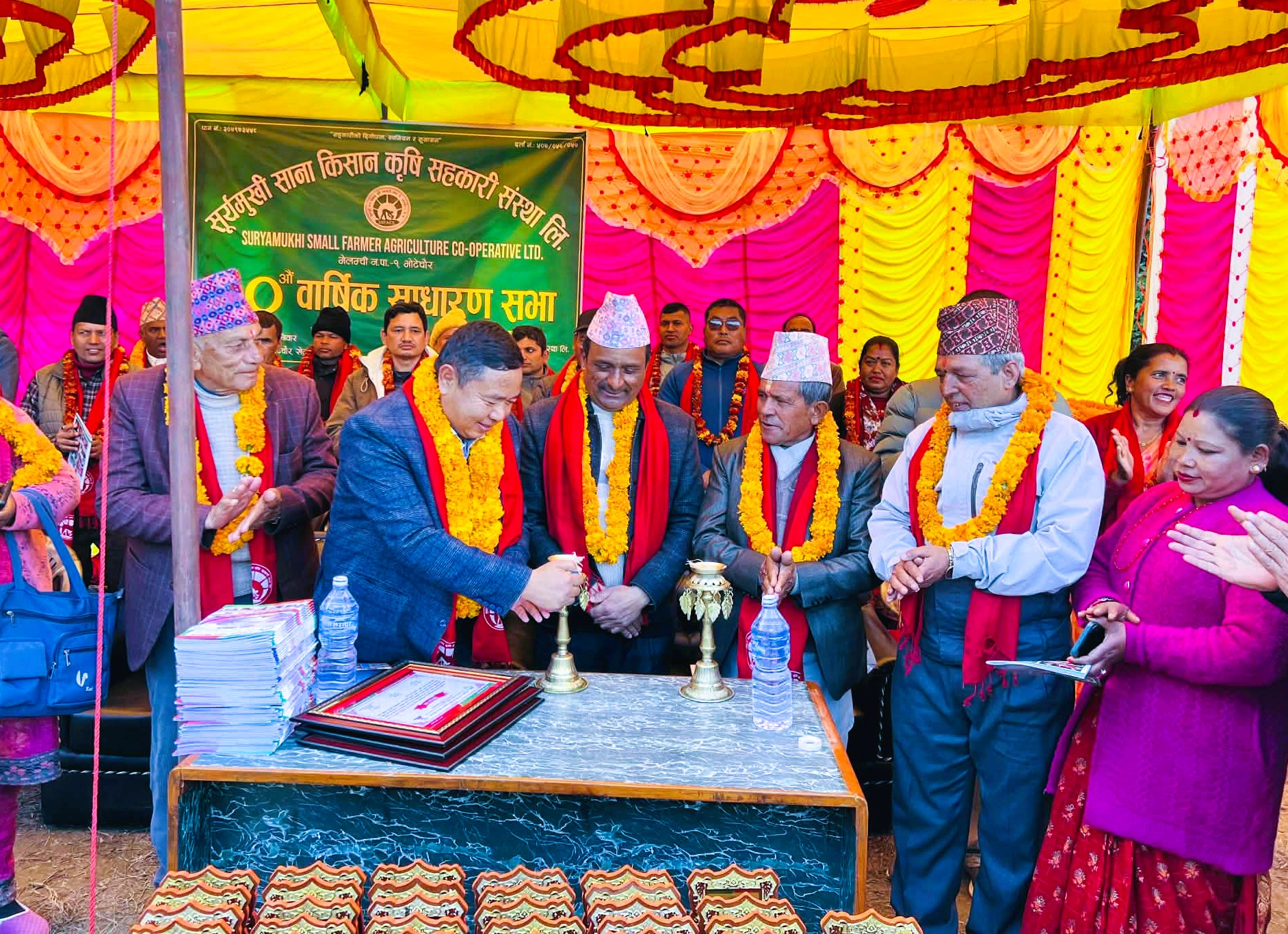 सुर्यमुखी साना किसान कृषि सहकारी संस्थाले आफ्नो २०औँ वार्षिक साधारणसभा सम्पन्न गरेको छ। मेलम्ची नगरपालिकाका प्रमुख आइतमान तामाङको प्रमुख आतिथ्यमा सम्पन्न कार्यक्रममा सहकारीका अध्यक्ष मित्रलाल चौलागाईंले अध्यक्षता गर्नुभएको थियो। कार्यक्रममा बोल्दै नगरप्रमुख तामाङले सुर्यमुखी सहकारीलाई बागमती प्रदेशकै उदाहरणीय सहकारीको रूपमा उल्लेख गर्नुभयो। सहुलियत ऋण र कृषिमैत्री कार्यक्रमका कारण किसानको आयआर्जनमा सुधार आएको उहाँको भनाइ थियो। उहाँले नियमित बचत र उत्पादनमा आधारित सहकारी गतिविधिलाई अझ सशक्त बनाउन आग्रह गर्नुभयो। नगरपालिकाले कृषक लक्षित अनुदान, तालिम, पशुपालन तथा नगदेबाली प्रवर्द्धनका कार्यक्रम सञ्चालन गरिरहेको जानकारी दिँदै उहाँले आगामी बजेटमा पनि कृषि क्षेत्रलाई प्राथमिकता दिइने बताउनुभयो। तीन तहका सरकारबीच सहकार्य आवश्यक रहेकोमा उहाँले जोड दिनुभयो।